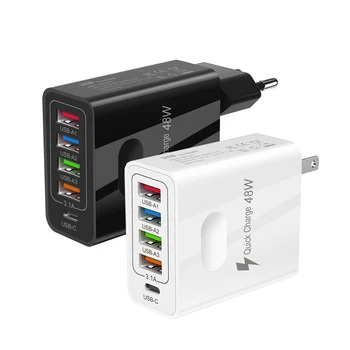 Özel 48W 3.1A hızlı şarj adaptörü USB C 5 Port telefon 5 USB çok fonksiyonlu şarj